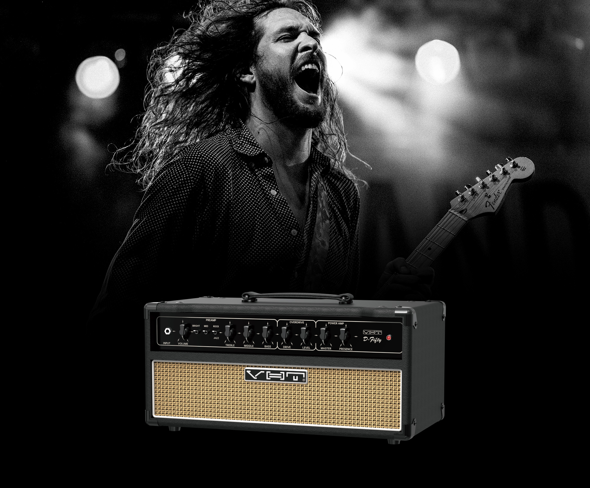The D-Fifty head is VHT’s interpretation of an extremely rare and iconic boutique amplifier. It's handwired on eyelet boards, featuring three 12AX7 preamp tubes and two 6L6GC output tubes.